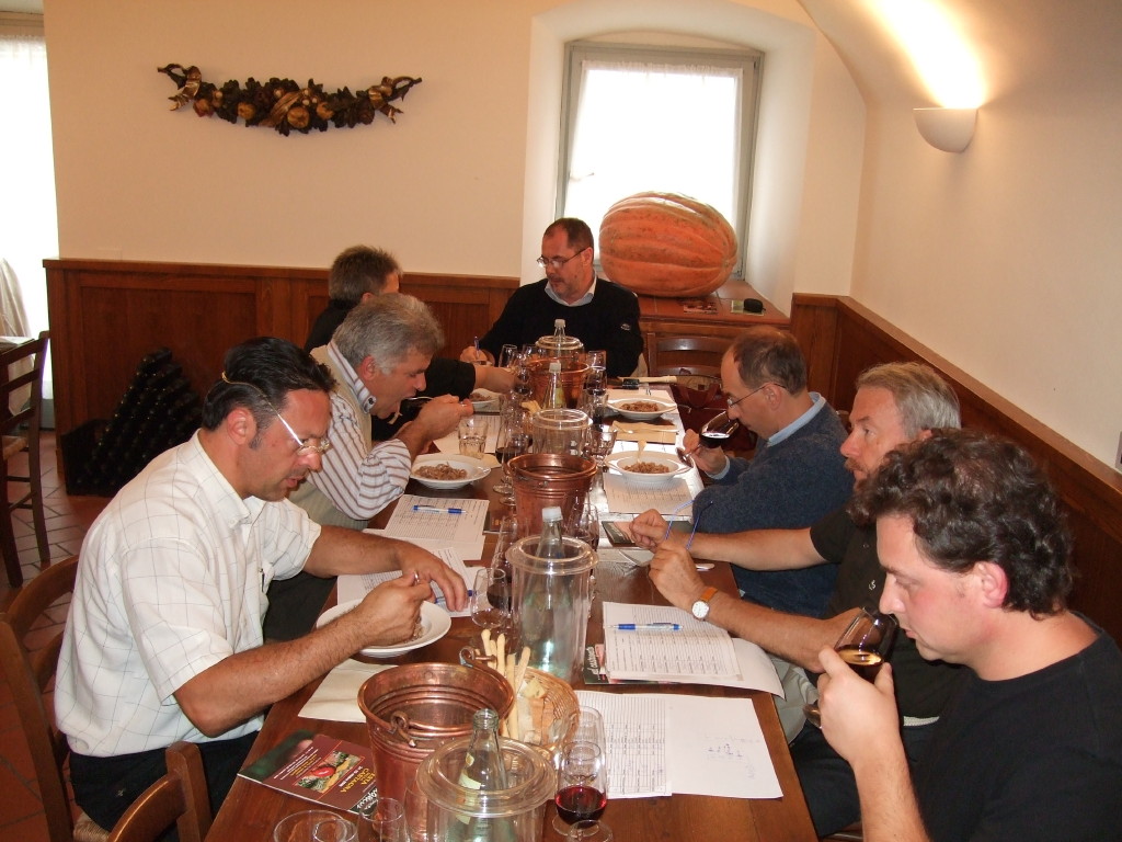 Erstmalig dabei wurde im Vorfeld ein Wettbewerb organisiert, bei welchen der ideale Wein zu diesen Gerichten ermittelt werden sollte.  Die Speisen, zu denen immer wieder die Weine in 3er- und 4er-Serien gereicht wurden, waren: Tagliatelle aus Kastanienmehl mit Wildschweinragu, Lendenstückbraten mit Kastaniencremefüllung auf gegrillter Polenta und Kastanienkuchen. Die Personen, welche die Kombinationen beurteilten, waren der Gastro-Journalist Paolo Massobrio, die Sommeliers Mauro De Concini, Mariano Francescani und Maria Grazia Brugnara, der Gastronom Sergio Valentini, Stefano Viesi der Associazione Marroni di Castione und meine Wenigkeit als Weinproduzent. Organisiert wurde diese etwas andere Weinkost von den Sommelières Rosaria Benedetti und Maria Grazia Brugnara.