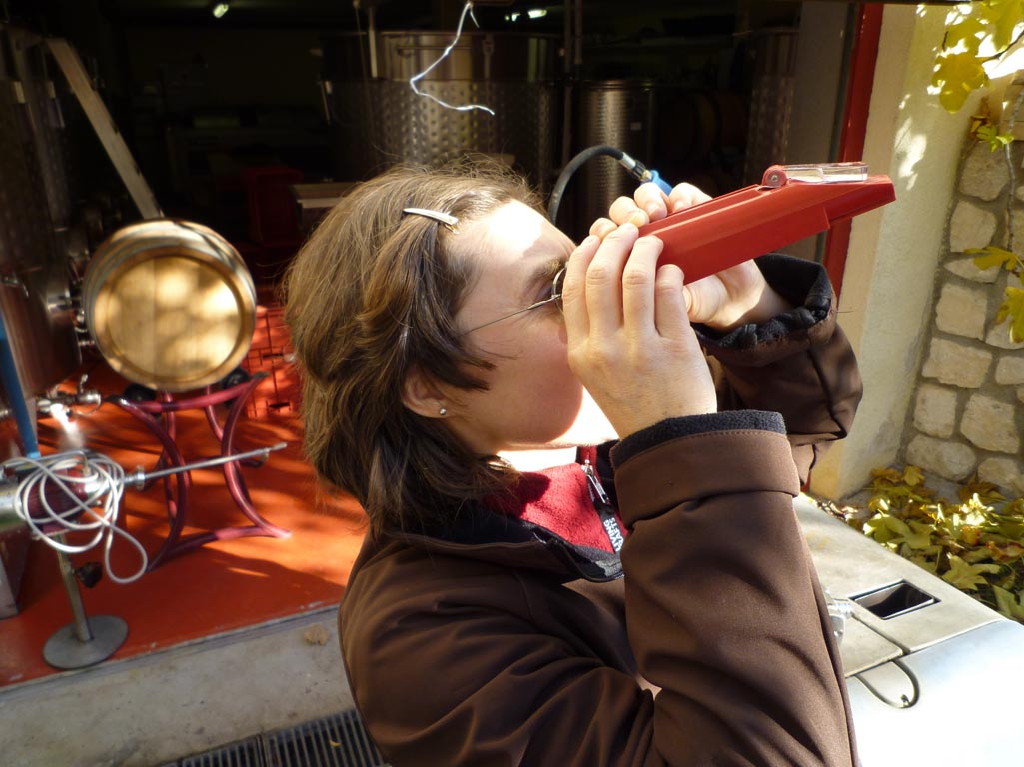 2004 von einer Reise aus dem Madiran zurückgekehrt, war ich von den dortigen Weinen der Sorte Tannat, aber auch von Landschaft und Leuten so beeindruckt, dass ich unbedingt probeweise eine kurze Rebzeile in Hausnähe setzen musste. Es ist eine spätreifende, äußerst tanninreiche Sorte. Um in jedem Fall die phenolische Reife zu erreichen, wollte ich sie, unabhängig von der Zuckerkonzentration, so spät als möglich wimmen.